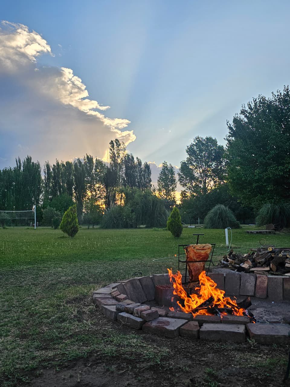 Asador a la estaca, fogón y zonas de encuentro al aire libre.